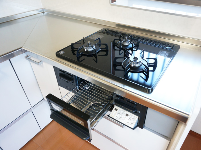 お掃除簡単なガラストップコンロも新品