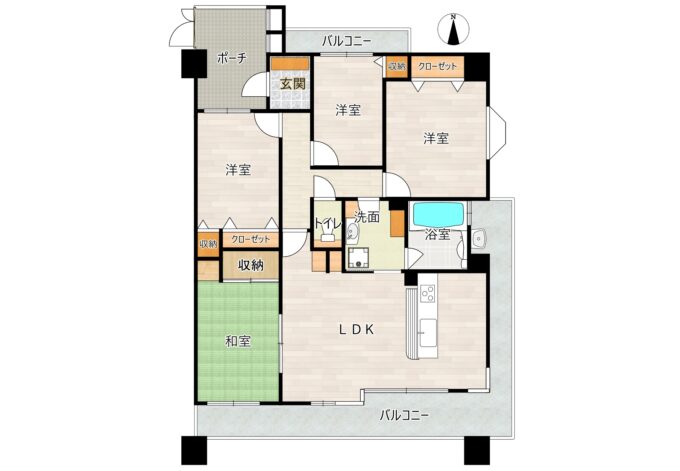 | 専有面積 | 95.68 ㎡(28.99 坪) | バルコニー面積 | 三面 26.30 ㎡(7.95 坪) |